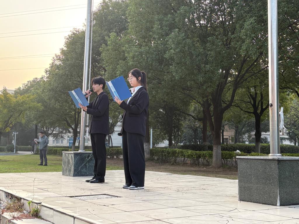 朝阳下,五星红旗在《义勇军进行曲》中冉冉升起,全体师生高唱国歌,在国旗飘扬间感受历史的厚重与时代的责任。