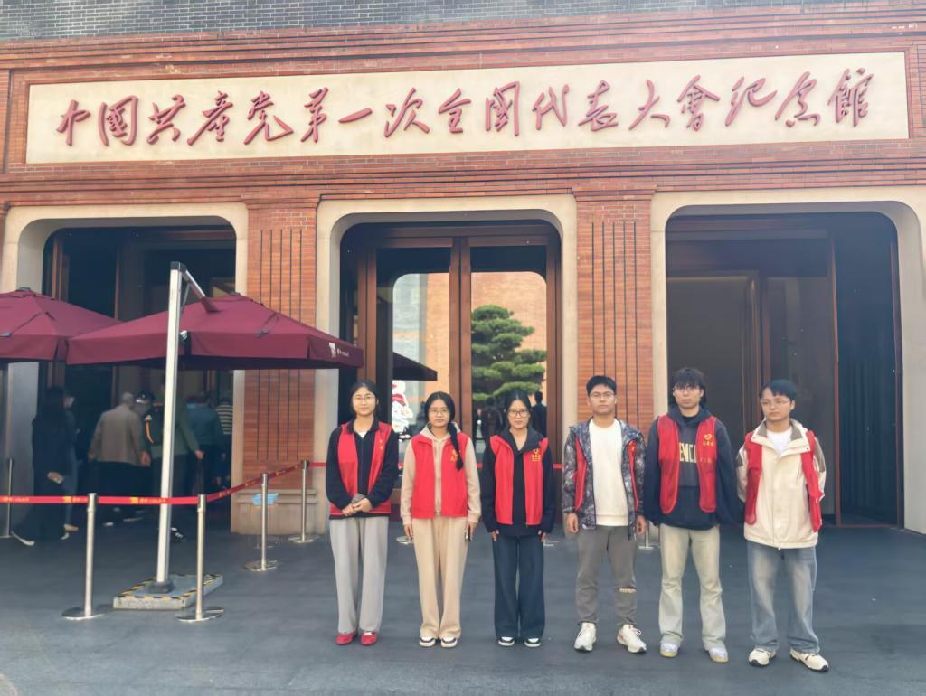 移步中共一大会址,这座承载着“开天辟地大事变” 记忆的红色地标,成为学子们传播红色文化的重要阵地。志愿者们围绕“中国共产党的诞生与初心使命”主题,以展厅内的百年文物、珍贵影像为依托,用清晰易懂的逻辑勾勒历史脉络。恰逢一批来自不同国家的外国游客参观,同学们将厚重历史转化为生动叙事,还结合当下中国的发展成就,让外国游客更直观地理解“初心”的时代延续。多位外国游客也纷纷称赞学子们的专业素养与热情态度,认为这样的讲解让遥远的历史变得可感可知,搭建起中外文化交流的桥梁。